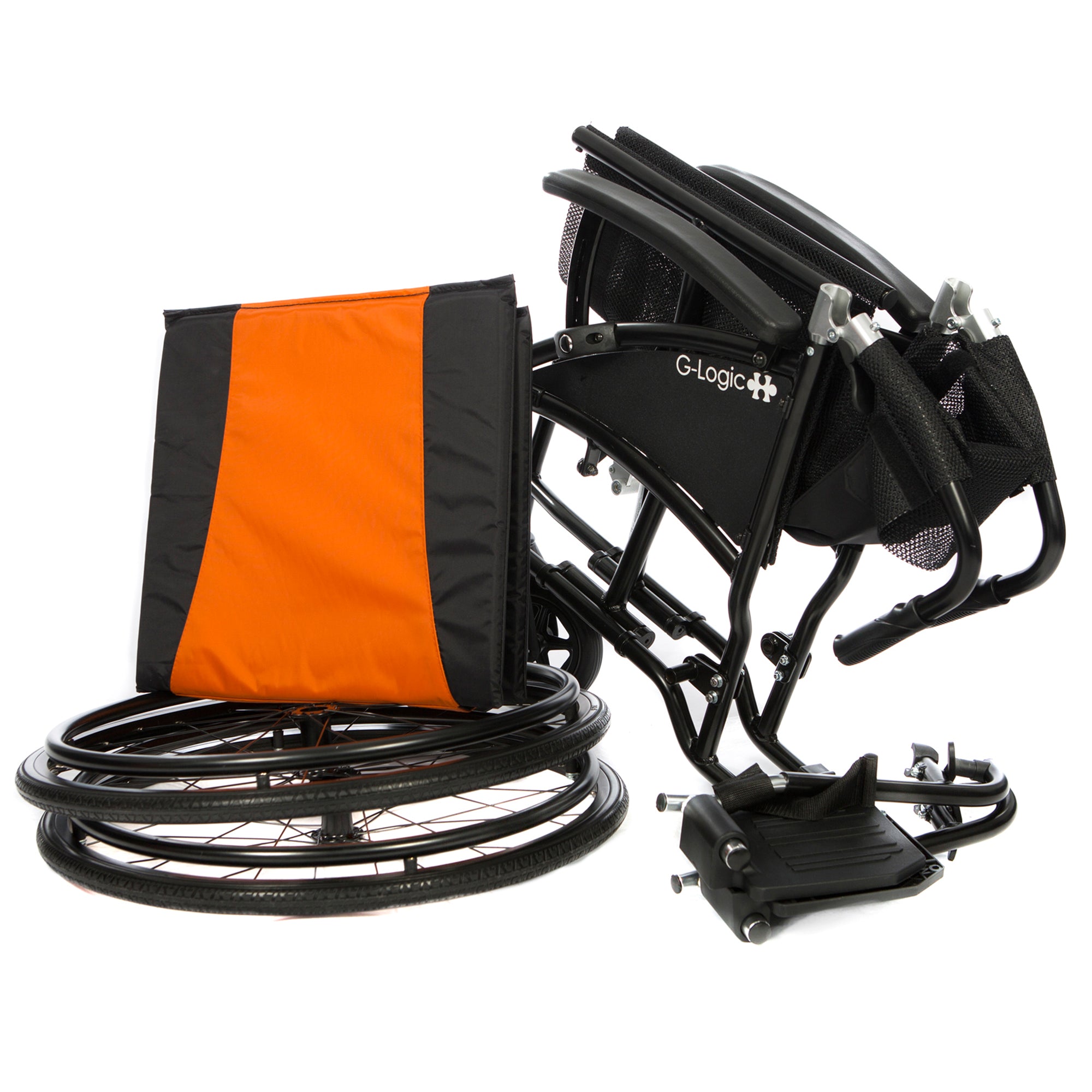 The G-Logic can be easily folded for transportation, which means it can fit into the boot of almost any car, into narrow train passage ways and even on plane journeys. A quick release mechanism engaged by pulling up the seat upholstery folds the chair up in one easy motion.
