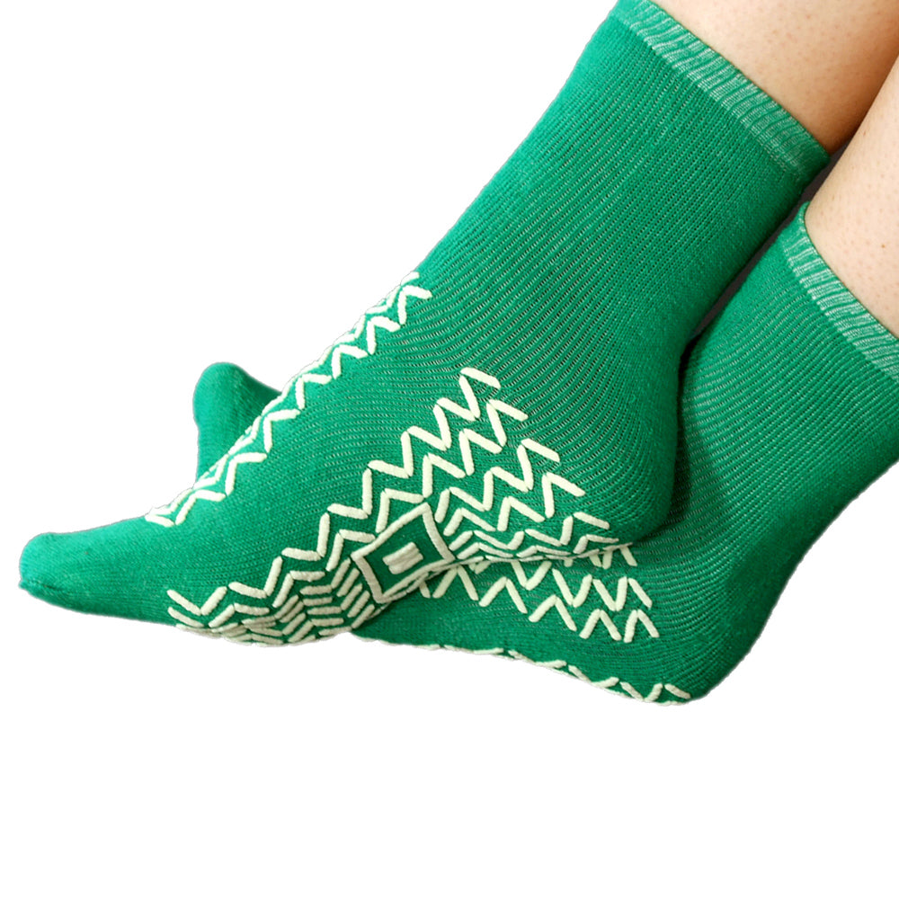 Ideal for walking on slippery floors, stairs, cold tiles, and other surfaces. Latex free, evenly spread double tread on the top and bottom allows excellent grip and helps maintain balance.